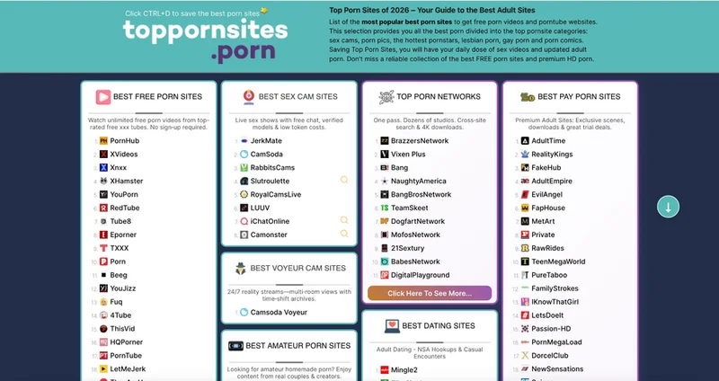 TopPornSites.porn works because it does the unsexy part for you: arranging the porn internet into something you can interact with and go right through. It’s a porn directory, but it doesn’t feel like some dusty link farm — it seems like an actual, refreshed porn map built around the ways in which people are consuming this stuff in 2026.