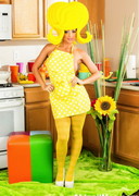 Not sure if porn star Abigail Mac is supposed to be a specific character, or if she’s just wearing a wacky costume, but it’s impressive that she can wear that ridiculous cartoon hair and STILL be smoking hot! I totally wish my dick was that cucumber.. well, maybe not in the last pic.