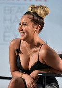 Here’s Adrienne Bailon looking a little… inflated.. but very busty and curvy in a leather dress for the Latina Beauty, Hair & Wellness Expo in New Jersey! I would love to dive into that latina thickness but why does her head look like a balloon? Too much botox?