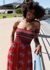 Big boob ebony babe Angel Avril flashing her big tits in publish before going all out to pose naked in a car! Anyone know what city this is?