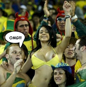 Tonight is the World Championship Qualifications in soccer. Ofcourse Im rooting for Sweden to beat Hungary! Ive loaded up with beer and chips, so all I need is a victory and the night should be complete. To set everyone in the mood for a great soccer evening I found this photo taken at a Brazil game. The chick is pretty hot and got a real nice rack 🙂 unless she’s a tranny.. then I take all that back.