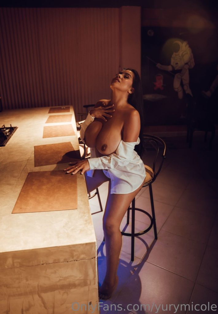 Yurymicole is a Colombian girl with very large breasts and I enjoy looking at them as she shows them off! I hope you will enjoy it too.