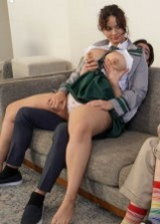 Busty Crystal Chase is bringing her boyfriend home to meet her step-father for the first time. Crystal happens to live in a freeuse household so her step-dad doesn’t mind that her boyfriend immediately starts fondling Crystal’s big tits and that his step-daughter sits on a cock while they chat.