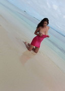 I guess Ewa Sonnet is still in paradise? Fine by me as long as she keeps putting sexy photos like these of her stripping out of a pink dress at the beach! My only wish is that I was with her in paradise.