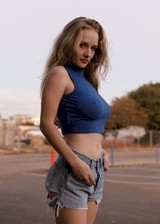 GRRRRrrreat set of busty babe Giana Van Patten flashing her lovely tits outside the Jackie Robinson Stadium in West LA just as the sun is setting! Zishy found another winner, her boobs are perfect.