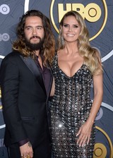 Heidi Klum put on a great display of pushed up cleavage on the red carpet while posing with Aquaman at the HBO Emmy Awards after party! She still got it! If by “it”, you mean nice tits.