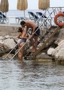 Candids of Kelly Brook going for a swim in Italy with her new boyfriend! Seems like she’s put on quite a bit of weight since she dated that muscle freak, but the good news is that her HUGE boobs are back as well! I prefer my Kelly Brook bigger and bustier so I’m happy with this.