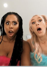 Sexy girls Kira Noir and Kay Lovely are big fans of busty influencer Chloe Surreal and they have broken into Chloe’s bedroom to sniff her panties when they find one of Chloe’s big dildos! They get so excited that they don’t even notice that Chloe is walking in on them!