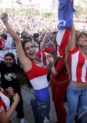 Paraguay is going to face off against Japan at the World Cup in the next couple of hours so I figured it would be a great idea to revisit these pics of the, so far, hottest World Cup fan; Larissa Riquelme! The pics I posted earlier were great, but I had missed that Larissa suffered a bit of a wardrobe malfunction during the celebration after the game! Not a full blow nip slip but lots of areola!