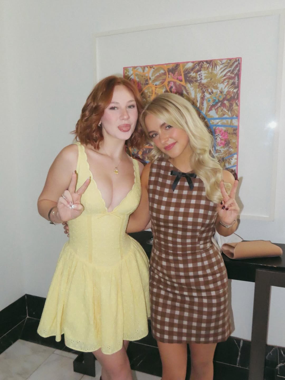 Lily Brooks O’Briant being a pretty and busty redhead in a yellow dress as she attends a screening of Regretting You in West Hollywood!