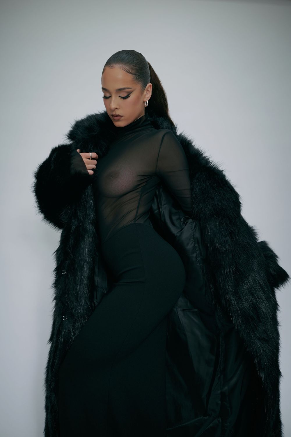 In case you missed it, I recently posted singer Maeta showing nice cleavage at the iHeart Radio Music Awards, and today I discovered that she showed off her nude tits by posing in a sheer dress for Principle magazine!