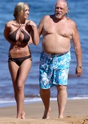 Here’s Jenna Bentley and her silicon filled boobs in a bikini in Miami the other day. Whats bigger, her boob or the volleyball?