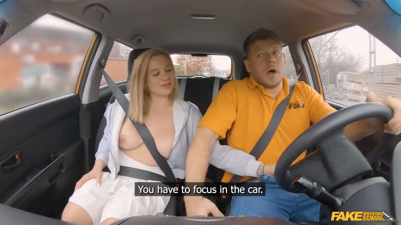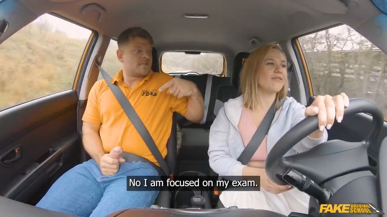 Sexy blonde Mar Bella is pretty confident when it comes to taking her driving test. As she’s driving along her big tits start to fall out of her top but she’s maintaining focus and her driving instructor is able to sneak in a quick wank.