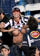 I already posted a link to the video of this Mexican soccer fan flashing her big knockers to the crowd but how about some pics as well? I hope she gets free VIP tickets to the World Cup later this year..