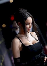 French model Nabilla Benattia being busty and gorgeous in a black dress at the Ballon D’Or photocall in Paris! What a nice shelf she brought to the red carpet. Would love to put a book on it.