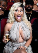 I was holding off on posting these pictures of Nicki Minaj at the 2018 BET Awards! because the quality isn’t the best, but I can wait no more. Her boobs need to be seen!! Nicki was wearing a sexy silver dress, making her very boobtastic while sitting in the audience, but then managed to become even more boobtastic while performing in a latex outfit!