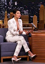 Priyanka Chopra was on a recent episode of The Tonight Show with Jimmy Fallon and her cleavage was terrific! I really like this topless under a blazer look which seems to be popular with the celebs these days.