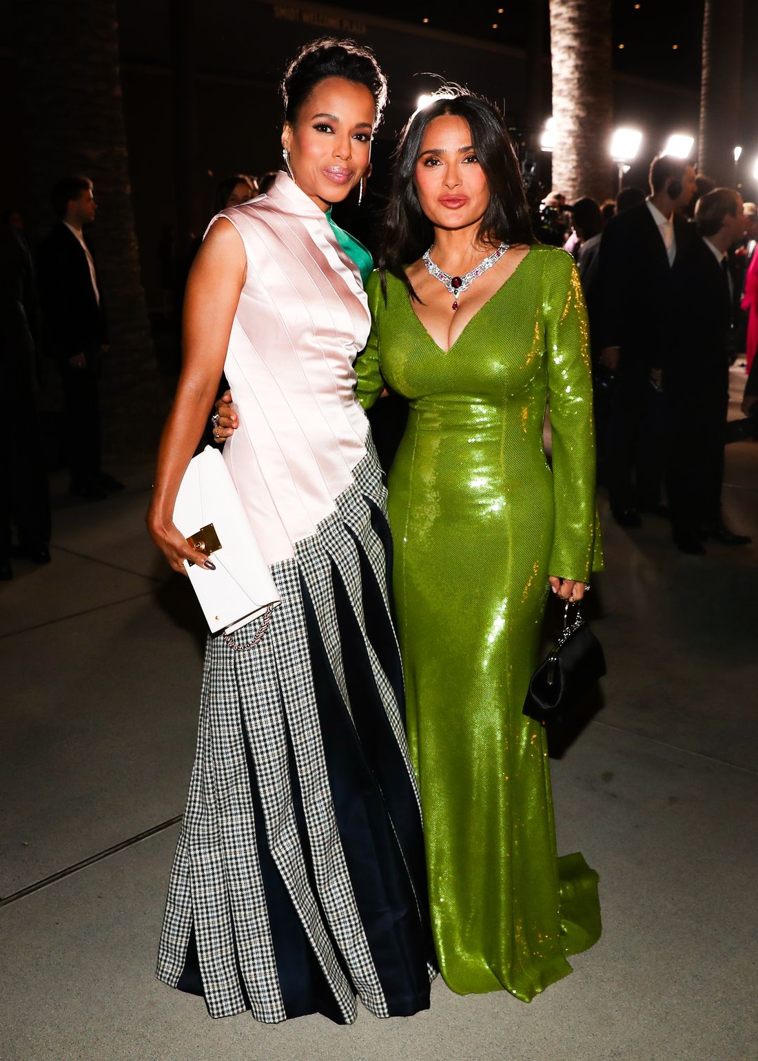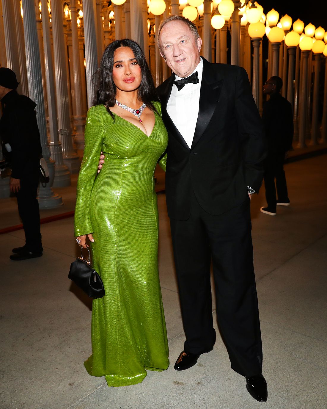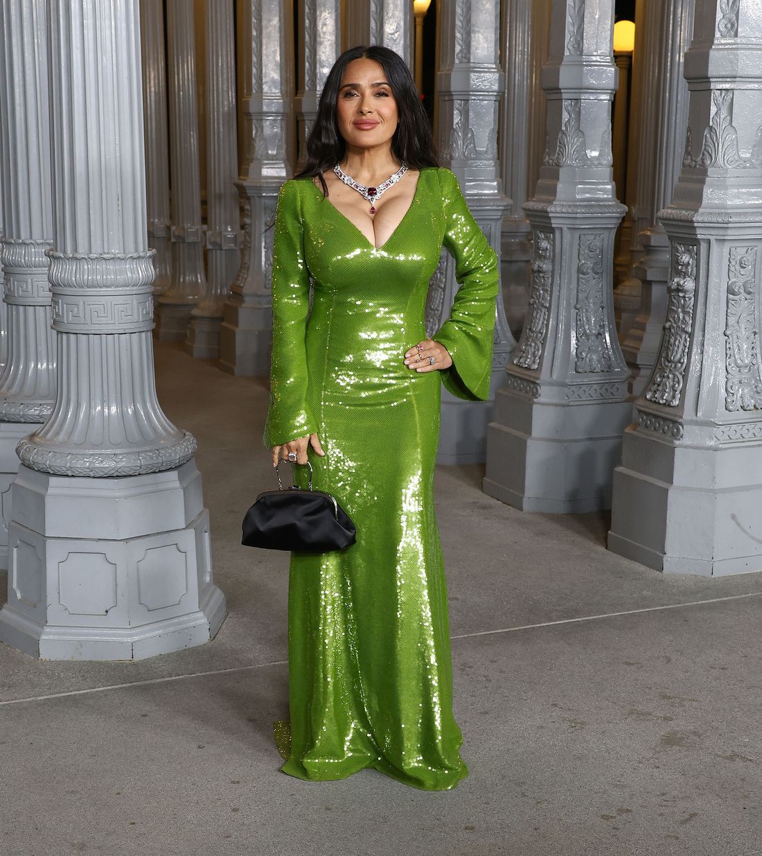 Salma Hayek showing off her big boobs in a nice green dress while attending the 2025 LACMA Art & Film Gala along with her husband in Los Angeles!