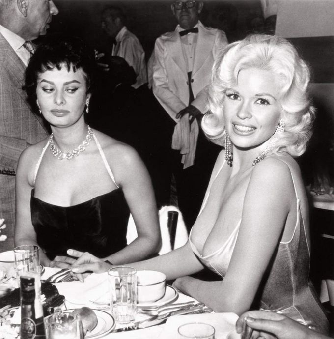 You’ve probably see this famous photo of Sophia Loren staring down Jayne Mansfield’s cleavage at a dinner, and looking somewhat disapproving (Vanity Fair has a good article on the story):