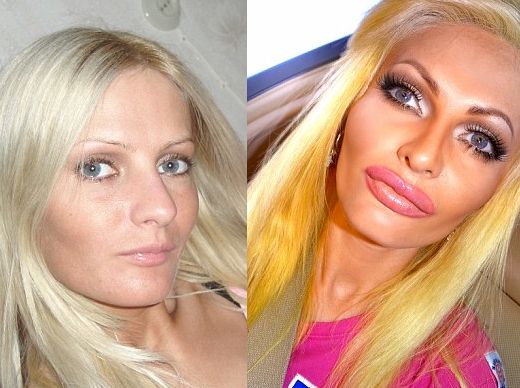 1. What the actual fuck s that!?!?! Normal attractive girl on the left, plastic skank whore on the right!